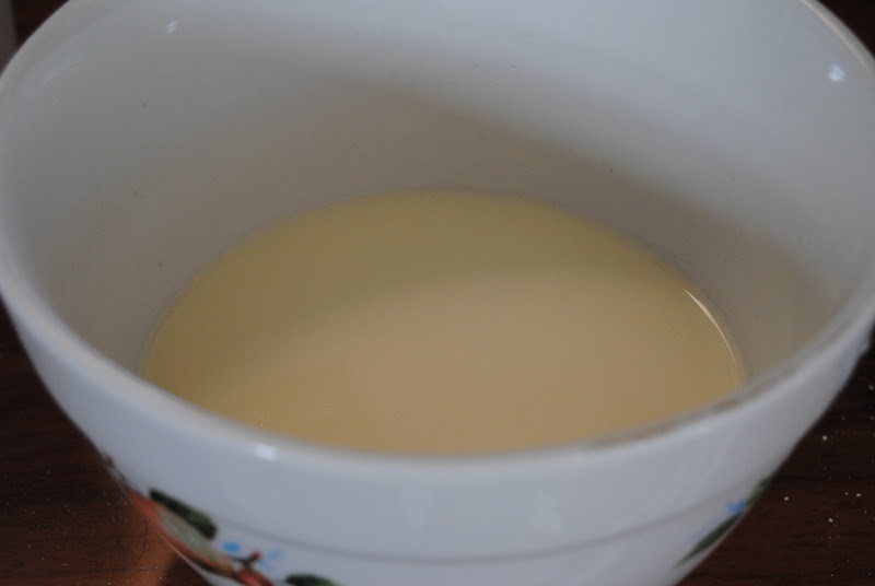 - Take another bowl and pour the milk or cream in it. Warm it up in microwave till it's about the body temperature.